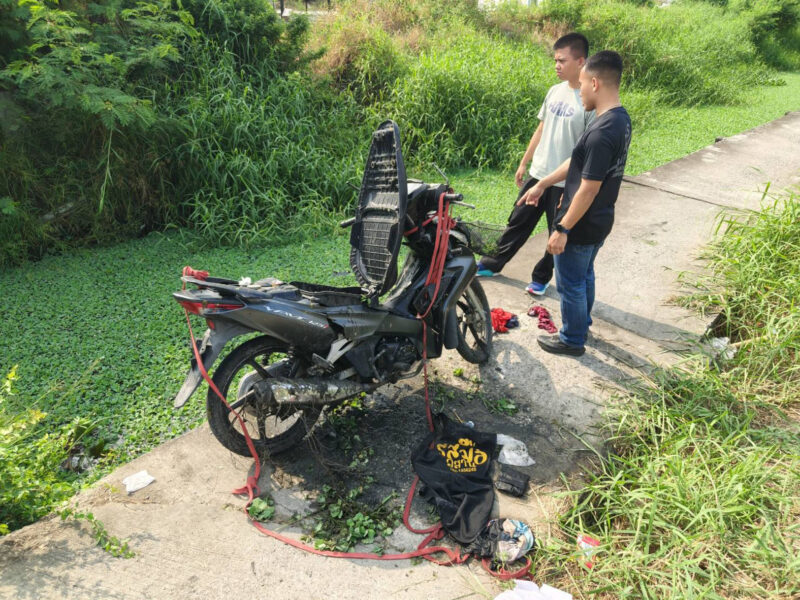 กรรมติดจรวจสองเยาวชนลักมอไซค์บิดหนีพลาดพุ่งตกคลอง ดับ 1 เจ็บ 1