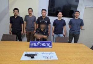 ฝ่ายสืบสวนสถานีตำรวจนครบาลหัวหมาก จับกุมชายวัย 23 ปี พร้อมอาวุธปืนพกสั้นขนาด 9 มม. หลังเกิดเหตุทะเลาะวิวาทและมีการยิงปืนขึ้นฟ้า บริเวณปากซอยรามคำแหง 24 แขวงหัวหมาก เขตบางกะปิ กรุงเทพมหานคร เมื่อช่วงค่ำวันที่ 25 กุมภาพันธ์ 2569