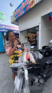 ล่าสุดนักข่าวเราไปเจอกับ ทางด้าน นางสาวณิชา นาคประโคน แม่ค้าร้านไก่ทอด บอกว่า คุณป้าคนดังกล่าว มาถึงร้าน ก็มาสั่งหนังไก่ และตีนไก่ ถุงละ 30 บาท พอได้ก็นั่งทาน แถมยังบอกว่า เดี๋ยวรอให้เพื่อนมาจ่าย จากนั้นก็ลุกเดินหนีออกจากตลาดไป ตนเองจึงเดินตามไป จนปรากฏตามคลิปดังกล่าว