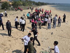 “ท่าเรือประจวบ-ทรภ.1 นำทีมชุมชนบ้านหนองเสม็ด เก็บขยะชายหาด