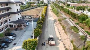 นายปรเมศวร์ งามพิเชษฐ์ นายกเมืองพัทยา พร้อมด้วย มาโนช หนองใหญ่ รองนายกเมืองพัทยา ลงพื้นที่ติดตามความคืบหน้าการยกระดับผิวถนนพร้อมปรับปรุงบ่อพัก บริเวณถนนเลียบทางรถไฟ ช่วงเขาตาโล ซึ่งเป็นส่วนหนึ่งของโครงการปรับปรุงผิวจราจรแอสฟัลท์ติกคอนกรีต ถนนเลียบทางรถไฟฝั่งตะวันตก ระยะทางรวม 16 กิโลเมตร