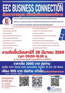 มีรายงานว่า ดร.วิริยพล คณาสิริวัฒน์ ผู้ก่อตั้งและประธานเจ้าหน้าที่บริหารนิตยสารออนไลน์ 3 ภาษา ไทย จีน อังกฤษ ในนาม“TRENDS REAL ESTATE MAGAZINE” และผู้ก่อตั้งและประธาน “EEC BUSINESS CONNECTION” และที่ปรึกษามูลนิธิพระมหาไถ่เพื่อการพัฒนาคนพิการ เตรียมจัดงานสัมมนาการกุศลเพื่อเด็กพิเศษและคนพิการ ภายใต้ชื่องาน “EEC BUSINESS CONNECTION ยกกำลัง 2” ในวันเสาร์ที่ 28 มีนาคม 2569 ณ.ห้องบัวหลวง ศูนย์ประชุมมูลนิธิพระมหาไถ่ พัทยา จ.ชลบุรี