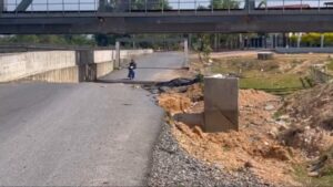 วันที่ 27 กุมภาพันธ์ 2569 ผู้สื่อข่าวได้รับการร้องทุกข์จากชาวบ้าน ชุมชนบ้านโคกเมา ตำบลท่าช้าง อำเภอบางกล่ำ จังหวัดสงขลา ว่า ถนนริมคลอง ร.1 บริเวณทางลอดใต้สะพานรางรถไฟเกิดถนนทรุดตัวจนพังเสียหายเป็นหลุมเป็นบ่อ