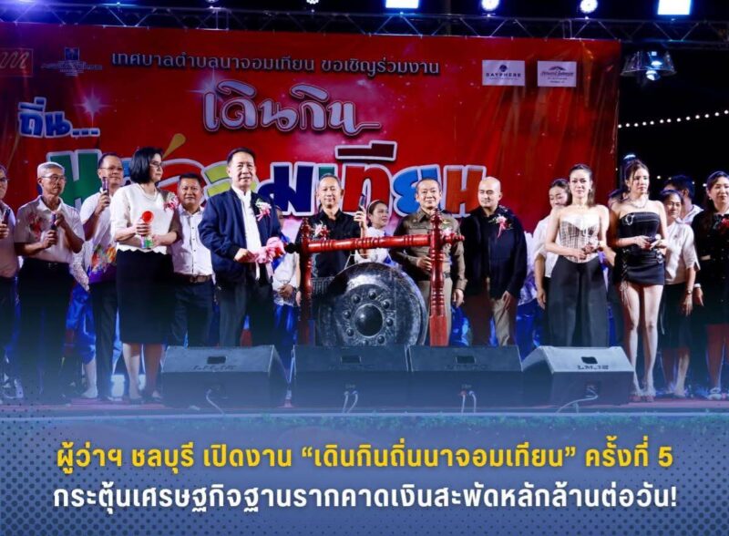 ผู้ว่าฯ ชลบุรี เปิดงาน “เดินกินถิ่นนาจอมเทียน” ครั้งที่ 5 กระตุ้นเศรษฐกิจฐานราก คาดเงินสะพัดหลักล้านต่อวัน!