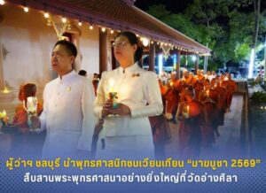 ผู้ว่าฯ ชลบุรีนำพุทธศาสนิกชนเวียนเทียน “มาฆบูชา 2569” สืบสานพระพุทธศาสนาอย่างยิ่งใหญ่ที่วัดอ่างศิลา