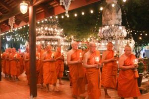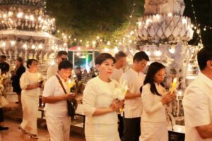 นอกจากนี้ ยังมีการยังมีกิจกรรมการแสดงศิลปวัฒนธรรมจากเยาวชนในพื้นที่ อาทิ ชุด “รำบายศรีสู่ขวัญ” จากโรงเรียนอ่างศิลาพิทยาคม และการแสดง “รำสีนวล” จากโรงเรียนอนุบาลเมืองใหม่ชลบุรี สร้างความประทับใจแก่ผู้ร่วมงานในช่วงท้ายของกิจกรรม คณะสงฆ์ พร้อมด้วยผู้ว่าราชการจังหวัดชลบุรี และพุทธศาสนิกชน ร่วมพิธีเวียนเทียนรอบอุโบสถ สะท้อนพลังศรัทธาและความร่วมแรงร่วมใจของชาวชลบุรีในการธำรงไว้ซึ่งพระพุทธศาสนาและคุณธรรมของสังคมไทย