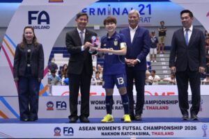 สมาพันธ์ฟุตบอลอาเซียน หรือ เอเอฟเอฟ จัดพิธีมอบแชมป์การแข่งขันฟุตซอลหญิงชิงแชมป์อาเซียน (Asean Women’s Futsal Championship 2026) ที่จัดขึ้นที่ เทอร์มินอลฮอลล์ ศูนย์การค้าเทอร์มินอล 21 โคราช จ.นครราชสีมา