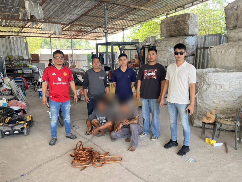 สืบเนื่องจากเมื่อเวลา 23.30 น. วันที่ 1 มี.ค. 69 ชุดสืบสวน สภ.นาจอมเทียน ได้รับแจ้งจากประชาชนว่ามีกลุ่มคนร้ายลักลอบตัดสายไฟในพื้นที่ โดยกล้องวงจรปิดสามารถบันทึกภาพคนร้ายได้อย่างชัดเจน จำนวน 4 คน ขับรถกระบะเข้ามาจอด ก่อนใช้บันไดปีนขึ้นตัดสายไฟ แล้วนำไปขายยังร้านรับซื้อของเก่าในพื้นที่
