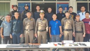 เมื่อเวลา 15.00 น.วันที่ 6 มี.ค.69 พ.ต.อ.วิษณุรักษ์ พรหมเมศร์ รองผบก.จ.ปทุมธานี พ.ต.อ.จรินทร์ อธิบธานนท์ ผกก.สภ.ธัญบุรี พ.ต.ท.ธวัชชัย รัตนพาหุ รอง ผกก.สส.สภ.ธัญบุรี พ.ต.ท.สุนทร สุขหน้าไม้ สว.สส.สภ.ธัญบุรี พร้อมเจ้าหน้าที่ตำรวจสืบสวนสภ.ธัญบุรี ได้ร่วมกันเยาวชนชาย อายุ 17 ปี และเยาวชนชายอายุ 14 ปี พร้อมของกลางอาวุธปืนและเครื่องกระสุนปืน1. อาวุธปืนยาวไทยประดิษฐ์ แบบกระทุ้งใช้กระสุนลูกซองขนาด 12 เกจ จำนวน 2 กระบอก2. อาวุธปืนยาวไทยประดิษฐ์ ใช้กระสุนขนาด .22 จำนวน 1 กระบอก3. อาวุธปืนสั้นไทยประดิษฐ์ สีดำ ใช้กระสุนขนาด 380 จำนวน 1 กระบอก4. อาวุธปืนสั้นไทยประดิษฐ์ สีเงิน ใช้กระสุนขนาด 380 จำนวน 1 กระบอกพร้อมแม็กกาซีนจำนวน 2 อัน5.อาวุธปืนสั้นแบบรีวอลเวอร์ สีดำ ขนาด 38 จำนวน 1 กระบอก พร้อมซองหนังสีดำจำนวน 2 ซอง6. อาวุธปืนไทยประดิษฐ์ แบบกระทุ้งใช้กระสุนลูกซองขนาด 12 เกจ จำนวน 1 กระบอก7. กระสุนปืนขนาด 380 จำนวน 55 นัด8. กระสุนปืนขนาด 22LR จำนวน 50 นัด9. กระสุนลูกซองขนาด 12 เกจ จำนวน 3 นัด โดยจับกุมผู้ต้องหาได้ที่บริเวณบ้านเลขที่ 45/2 หมู่ 12 ต.บึงคอไห อ.ลำลูกกา จ.ปทุมธานี