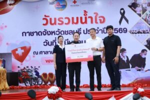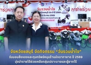 จังหวัดชลบุรี จัดกิจกรรม“วันรวมน้ำใจ”รับมอบสิ่งของและทุนทรัพย์หนุนร้านมัจฉากาชาดปี 2569 มุ่งนำรายได้ช่วยเหลือกลุ่มเปราะบางและผู้ยากไร้