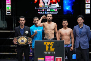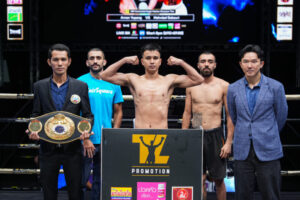 – คู่ที่ 3 คู่เอกอีกคู่ชิงเข็มขัด WBA Asia South Featherweight Title