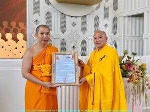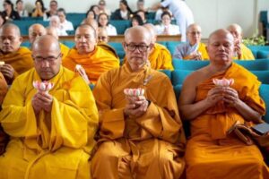 นอกจากนี้ พระด๊อกเตอร์ อติคุณ ธิตวโร ผู้แทนวัดพระธรรมกาย ประเทศไทย ได้มอบของที่ระลึกแก่พระเถระและแขกผู้มีเกียรติ พร้อมจัดพิธีอนุโมทนาในวาระครบรอบ 30 ปีแห่งการอุปสมบทของพระครูภาวนาญาณวิเทศ จากนั้นมีพิธีถวายภัตตาหารเพลแด่พระสงฆ์ ส่วนช่วงบ่ายจัดพิธีมาฆบูชานานาชาติ มีการแสดงพระธรรมเทศนา การจุดเทียนถวายเป็นพุทธบูชา การเจริญสมาธิภาวนา และพิธีสวดมนต์เจริญพระพุทธมนต์ร่วมกันของพระสงฆ์ทั้งสามนิกาย แม้ใช้ภาษาบาลี เวียดนาม และทิเบต แต่ล้วนมีจุดมุ่งหมายเดียวกัน คือการส่งเสริมความสามัคคี ปัญญา และเมตตาต่อสรรพชีวิต