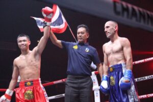 – คู่ที่ 7 ก้องเสลภูมิ รร.กีฬายโสธร โดน โมฮัมเหม็ด อาร์ยาฮี เตะเจาะยางพ่าย ทีเคโอ.ยกที่ 2