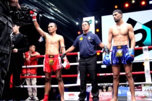 – คู่ที่ 6 มวยไทยรุ่นยักษ์พิกัด 100 ก.ก.มัธยม ศิษย์กำนันนิรันดร์ โดน เดอะฮัค ศิษย์เจ๊ทูรย์ ย้ำแค้นชนะคะแนนเป็นครั้งที่สอง