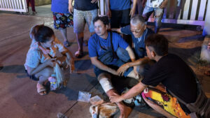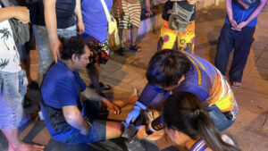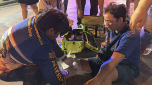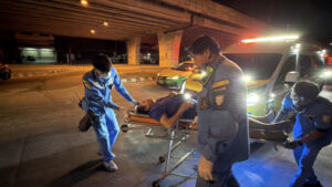 แจ้งเหตุทำร้ายร่างกาย กู้ชีพ–กู้ภัยวิ่งกันวุ่น สุดท้ายหนุ่มกัมพูชาอ้างเหยียบกระเบื้องลื่นล้ม เข่าฉีกเลือดสาด