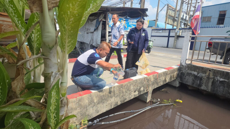 ชาวบ้านจึงขอพึ่งพาท่าน สส.คนใหม่ หวังว่าจะให้ช่วยเหลือชาวบ้าน ทางด้านนาย ฐาปกรณ์ กุลเจริญ สส.เขต.6 จ.สมุทรปราการ ได้ให้ทีมงานพร้อมด้วย นาย บุญส่ง นาครักษ์ สมาชิกเทศบาลเมืองปู่เจ้าสมิงพราย นาย อภินันท์ แสนจินดา สมาชิกเทศบาลเมืองปู่เจ้าสมิงพราย นาย ธวัชชัย ไชยลังการ วิศวกรปฏิบัติการ สำนักงานอุตสาหกรรมจังหวัดสมุทรปราการ น.ส.พิมพชร ดงพระจันทร์ นักวิชาการสุขาภิบาลปฏิบัติการ เจ้าหน้าที่ สาธารณสุขเทศบาลเมืองปู่เจ้าสมิงพราย รุดลงพื้นที่ตรวจ พบว่าน้ำเป็นสีม่วงดำและมีกลิ่นเหม็น ทางเจ้าหน้าที่ได้ถ่ายรูปและเก็บน้ำตัวอย่างไว้เป็นหลักฐานเพื่อไปตรวจสอบอีกครั้ง