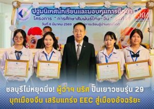 นายนริศ นิรามัยวงศ์ ผู้ว่าราชการจังหวัดชลบุรี เดินทางไปยังศูนย์เรียนรู้บ้านคุณกิตติ เพื่อร่วมงานปฐมนิเทศและกล่าวให้โอวาทแก่เยาวชนในโครงการ “การศึกษาสัมพันธ์ไทย-จีน” รุ่นที่ 29 ร่วมกับประธานมูลนิธิดำเนินชาญวนิชย์ และผู้ว่าราชการในภาคตะวันออก โดยเน้นย้ำความสำคัญของการสร้างบุคลากรคุณภาพเพื่อรองรับการเติบโตของเขตเศรษฐกิจพิเศษภาคตะวันออก (EEC)ผู้ว่าฯ นริศ ระบุว่านี่คือ “โอกาสทอง” ที่เยาวชนทั้ง 60 คน จะได้เดินทางไปศึกษาภาษาและวัฒนธรรม ณ โรงเรียนอาชีวศึกษาผู่หนิง มณฑลกวางตุ้ง สาธารณรัฐประชาชนจีน เป็นเวลา 50 วัน ระหว่างวันที่ 22 มีนาคม – 10 พฤษภาคม 2569 เพื่อเก็บเกี่ยวทักษะด้านนวัตกรรมและแนวคิดธุรกิจจากมหาอำนาจโลกมาพัฒนาบ้านเกิด จังหวัดชลบุรีไม่ใช่เพียงเมืองท่องเที่ยวหรือเมืองท่าสำคัญ แต่เราคือ ‘หัวใจหลักของเศรษฐกิจใหม่’ ในพื้นที่ EEC การเรียนรู้จากประเทศจีนจะช่วยขับเคลื่อนจังหวัดให้เป็นเมืองอัจฉริยะ (Smart City) ที่พร้อมรองรับการเติบโตระดับโลก นอกจากวิชาความรู้แล้ว ผู้ว่าฯ ยังสนับสนุนให้เยาวชนสร้าง “มิตรภาพ” และเครือข่ายคนรุ่นใหม่ร่วมกับเพื่อน ๆ จากจังหวัดฉะเชิงเทรา สระแก้ว และปราจีนบุรี เพื่อร่วมกันพัฒนาภาคตะวันออกในอนาคตสรุปข้อมูลโครงการรุ่นที่ 29 มีนักเรียน 60 คน จากยอดสะสมทุกรุ่นรวม 1,588 คน