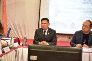 ผู้ว่าราชการจังหวัดมุกดาหารกล่าวต้อนรับคณะกรรมการสภา อุตสาหกรรมในการประชุมคณะกรรมการสภา อุตสาหกรรมภาคตะวันออกเฉียงเหนือ