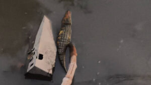 ผงะทั้งวัด! พระกำลังล้างจานหลังกุฏิ เหลือบเห็นคล้าย “ลูกจระเข้” โผล่คลองรีบแจ้งเจ้าอาวาสเตรียมเรียกกู้ภัย แต่สุดท้ายตรวจสอบใกล้ ๆ ถึงกับโล่งอก ที่แท้เป็นจระเข้ยางของเล่นลอยน้ำ