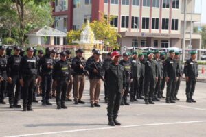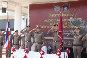 พร้อมด้วย ผกก.สภ.ฯ ในสังกัด คณะครูฝึก และข้าราชการตำรวจผู้เข้ารับการฝึกอบรม เข้าร่วมพิธีโดยพร้อมเพรียงกัน