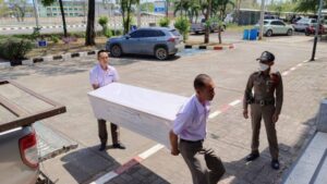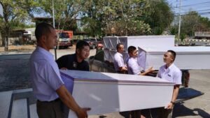 โดย นายณรงค์ บุกสันเทียะ(ญาติของผู้เสียชีวิต) เป็นผู้รับมอบโลงศพ