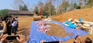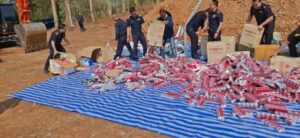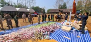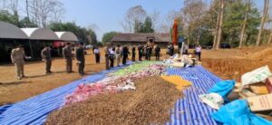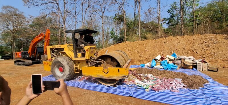 โดยก่อนพิธีทำลายของกลางผิดกฎหมายนายยอดพล วิชญกุล นายด่านศุลกากรแม่สอด เปิดเผยว่า ของกลางที่นามาทำลายในวันนี้ ประกอบด้วย บุหรี่ ซึ่งมีจำนวนรวมกว่า 3,800,000 มวน และของกลางที่เป็นสินค้าผิดกฎหมายอื่น อาทิ บุหรี่ไฟฟ้า ตู้คีบตุ๊กตา ซึ่งเป็นสินค้า มอมเมาเยาวชน พืชผลทางการเกษตร เวชภัณฑ์ยา ผลิตภัณฑ์อาหารเสริม เครื่องสาอาง รวมถึงสินค้าอุปโภคบริโภค ฯลฯ ซึ่งการทำลายของกลางในวันนี้จะใช้วิธีบดทำลายและฝังกลบโดยยึดถือแนวทาง โปร่งใสและเป็นมิตรต่อสิ่งแวดล้อม เพื่อยุติวงจรของสินค้าผิดกฎหมาย ป้องกันมิให้ของกลางกลับเข้าสู่สังคมและระบบการค้าโดยมิชอบ จากนั้นเจ้าหน้าที่ได้เริ่มการทำลายโดยใช้เครื่องจักรกลหนักบดทำลายของกลางทั้งหมดทิ้งพร้อมฝั่งกลบใต้ดินโดยมีสื่อมวลชนร่วมเป็นสักขีพยานในครั้งนี้