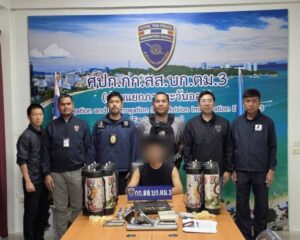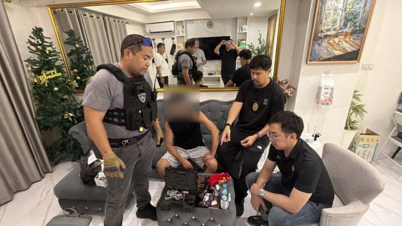 ทลายรังลับมังกรพัทยา! สืบ ตม.3 บุกจับหนุ่มจีน เปิดบ้านค้ายา–ขาย “แก๊สหัวเราะ” ออนไลน์ ยึดปืนเถื่อน กระสุนอื้อ พอตเคเพียบ