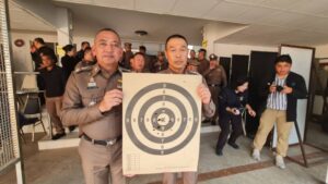 น.1 โชว์ฝีมือยิงเป้าปืนยาว M4 สนามยิงปืนสืบนครบาล 9 พร้อมมอบถุงยังชีพสร้างขวัญกำลังใจ