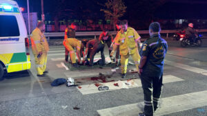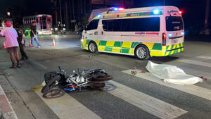 อุบัติเหตุสลดกลางถนนนิคมบางปู หญิงวัย 36 ปี ขี่รถจักรยานยนต์พยายามแทรกระหว่างรถสองแถวกับรถบรรทุก 6 ล้อ ระหว่างที่รถกำลังออกตัวจากสัญญาณไฟเขียว ก่อนเสียหลักล้มและถูกรถบรรทุกทับร่างเสียชีวิตกลางถนน ท่ามกลางความตกใจของผู้เห็นเหตุการณ์