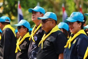 ข้าราชการ ลูกจ้างและพนักงานจ้าง สังกัดองค์การบริหารส่วนจังหวัดพิษณุโลก ที่พร้อมใจสวมชุดจิตอาสาพระราชทานและเสื้อสีดำเข้าร่วมกิจกรรมอย่างพร้อมเพรียง