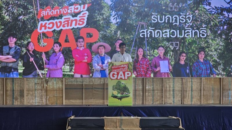 ที่ลานขนถ่ายสินค้า องค์การบริหารส่วนจังหวัดจันทบุรี เครือข่ายผู้เกี่ยวข้องในอุตสาหกรรมทุเรียนไทย 3 เครือข่าย ประกอบด้วย กลุ่มทำสวนเอาเงิน ไม่ได้เอาเงินทำสวน , สมาคมผู้ผลิตทุเรียนไทย (ATDP) , และสมาคมทุเรียนไทย (TDA) ร่วมกับหน่วยงานภาครัฐ ภาคเอกชน และผู้เกี่ยวข้องในอุตสาหกรรมทุเรียนไทย จัดกิจกรรมเสวนาและถ่ายทอดองค์ความรู้ในหัวข้อ “สกัดทางสวม หวงสิทธิ์ GAP” โดยได้รับเกียรติจาก นางคณิตา ราษฎร์นุ้ย รองผู้ว่าราชการจังหวัดจันทบุรี เป็นประธานเปิดกิจกรรมเสวนา เพื่อสร้างความตระหนักรู้และป้องกันการสวมสิทธิ์ใบรับรองมาตรฐาน GAP พร้อมยกระดับมาตรฐานคุณภาพทุเรียนไทยให้สามารถแข่งขันในตลาดโลกได้อย่างยั่งยืน การจัดกิจกรรมครั้งนี้เกิดขึ้นท่ามกลางสถานการณ์ที่อุตสาหกรรมทุเรียนไทยกำลังเผชิญความท้าทายหลายด้าน ทั้งการแข่งขัน