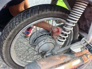 เสียว เตือนภัยผู้ปกครอง เด็ก 5 ขวบ ข้อเท้าติดล้อรถ จยย. กู้ภัยฯเร่งช่วยเหลือ