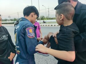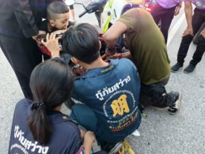 เมื่อเวลา 18.00 น. วันที่ 12 มีนาคม 2569 ศูนย์วิทยุหน่วยกู้ภัยมูลนิธิสว่างโรจนธรรมสถานสัตหีบ ได้รับแจ้งเหตุเด็กขาติดอยู่ในล้อรถจักรยานยนต์ บนถนนสุขุมวิท ช่วงกิโลเมตรที่ 5 ตำบลพลูตาหลวง อำเภอสัตหีบ จังหวัดชลบุรี หลังรับแจ้งจึงประสานเจ้าหน้าที่กู้ชีพพร้อมรถพยาบาลฯ เร่งรุดไปตรวจสอบและให้การช่วยเหลือ