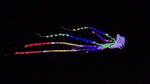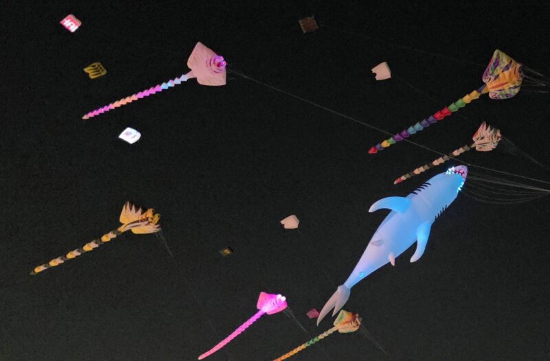 โดยจุดเด่นที่ดึงดูดสายตาและสร้างความตื่นตาตื่นใจให้กับผู้เข้าชมมากที่สุดคือ การแสดง “ว่าว LED” และ “ว่าวยักษ์แฟนซี” จำนวนมากที่ถูกปล่อยขึ้นสู่ท้องฟ้าเมืองปทุมฯ ซึ่งมีทั้งรูปทรงสัตว์ทะเล เช่น ปลาฉลามยักษ์ และหมึกเรืองแสง ที่เคลื่อนไหวอย่างพริ้วไหวและส่องแสงหลากสีสันตัดกับความมืดของท้องฟ้ายามค่ำคืน สร้างภาพลักษณ์ด้านการท่องเที่ยวที่ทันสมัยและเป็นเอกลักษณ์ จนกลายเป็นจุดเช็กอินสำคัญที่ทุกคนต้องหยิบมือถือขึ้นมาบันทึกภาพเก็บไว้
