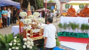 . โอกาสนี้ รองนายกรัฐมนตรีและรัฐมนตรีว่าการกระทรวงคมนาคม พร้อมด้วยผู้ว่าราชการจังหวัดสงขลา ได้มอบข้าวสารอาหารแห้งแด่คณะสงฆ์จากวัดต่าง ๆ จำนวน 323 วัด ในพื้นที่ 4 จังหวัดชายแดนภาคใต้ โดยมี พระครูวิจิตรศีลาจาร เจ้าคณะจังหวัดสงขลา–สตูล (ธรรมยุต) และเจ้าอาวาสวัดห้วยพุด ตำบลรำแดง อำเภอสิงหนคร จังหวัดสงขลา กล่าวสัมโมทนียกถา พระสงฆ์ร่วมอนุโมทนา ก่อนประกอบพิธีกรวดน้ำรับพร