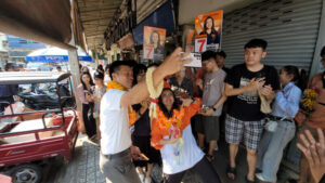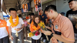 เท้ง หัวหน้าพรรคประชาชน ลงพื้นที่หาเสียงร่วมกับผู้สมัคร สส. สมุทรปราการ