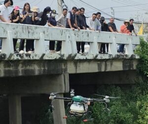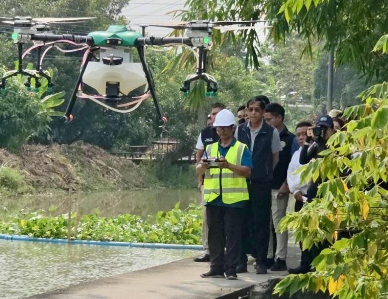 ปทุมธานี – นายกแจ๊ส ลุยเองบินโดรนลุยพ่นสารชีวภาพเตรียมรุกฆาตผักตบชวาทั่วจังหวัด