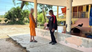 ทั้งนี้ระหว่างการพูดคุย นางสมคิด บุหงาชาติ ประธานองค์กรจัดสวัสดิภาพสัตว์ เดอะโฮปสงขลา เข้าร่วมชี้แจงกรณีพระรูปดังกล่าวแจ้งว่า มีชาวบ้านแจ้งว่ามีการวางยาสุนัข ซึ่งเดอะโฮปสงขลา ต้องเข้าช่วยเลหือและทำหมันสุนัขภายในวัด และชี้แจงถึงขั้นตอนการจับสุนัขไปทำหมันและการดูแลสุนัขในวัด เพื่อป้องกันไม่ให้สุนัขจากภายนอกเข้ามาอยู่ในวัดได้ ทำให้ชาวบ้านบางคนลุกขึ้นแสดงความเห็นไม่พอใจ ก่อนที่ปลัดอำเภอควนเนียงและผู้ใหญ่บ้าน จะช่วยไกล่เกลี่ยจนเหตุการณ์สงบลง