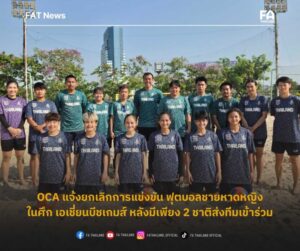 OCA แจ้งยกเลิกการแข่งขัน ฟุตบอลชายหาดหญิงในศึก เอเชี่ยนบีชเกมส์ หลังมีเพียง 2 ชาติส่งทีมเข้าร่วม