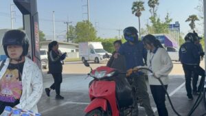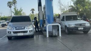 มุกดาหาร ประชาชนแห่เติมน้ำมันรอคิวที่ยาวเหยียดและปั๊มจำกัดยอดเติม
