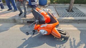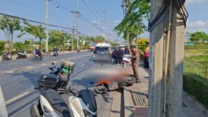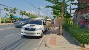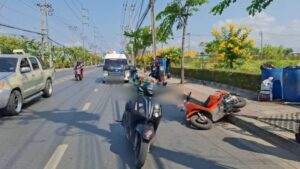 ใกล้กันพบรถจักรยานยนต์ ยี่ห้อฮอนด้า รุ่นสกู๊ปปี้ไอ สีส้ม ทะเบียน 2 กส 8078 กรุงเทพมหานคร ล้มตะแคงอยู่บนพื้นถนน ล้อหลังเกยอยู่บนฟุตบาท ได้รับความเสียหาย ซึ่งเป็นรถของผู้เสียชีวิต ห่างออกไปประมาณ 20 เมตร พบรถบรรทุกสิบล้อบรรทุกสารเคมี (สารกัดกร่อน) ยี่ห้ออีซูซุ สีฟ้า ทะเบียน 73-4493 กรุงเทพมหานคร จอดอยู่ในที่เกิดเหตุ โดยมีผู้ขับขี่เป็นชาย อายุ 65 ปี ยืนรอให้การกับเจ้าหน้าที่ตำรวจ