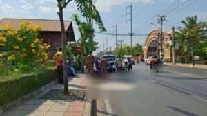 ที่เกิดเหตุบนช่องทางการจราจรเลนซ้ายสุด พบศพหญิง 1 ราย อายุ 54 ปี สภาพนอนคว่ำหน้าจมกองเลือดอยู่บนพื้นถนน สวมเสื้อยืดคอกลมแขนสั้นสีแดง ทับด้วยเสื้อคลุมแขนยาวสีฟ้า สวมกางเกงขายาวสีดำ และรองเท้าผ้าใบสีดำ ข้างลำตัวพบหมวกกันน็อกสีดำ และกระเป๋าถือสีฟ้าตกอยู่ใกล้กัน จากการตรวจสอบสภาพศพพบว่า ใบหน้าบิดเบี้ยวผิดรูป กระดูกหักหลายแห่งทั่วร่างกาย และมีบาดแผลเปิดขนาดใหญ่บริเวณหน้าท้อง คาดว่าเกิดจากการถูกรถบรรทุกทับอย่างรุนแรง
