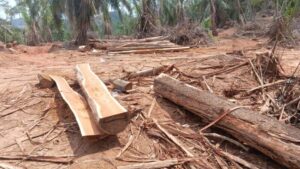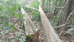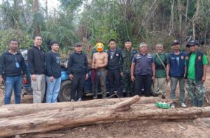 จากการเข้าสำรวจพื้นที่บนสันเขาประมาณ 10 ไร่ พบว่ามีการตัดโค่นต้นไม้ขนาดใหญ่จำนวนหลายร้อยต้น บางส่วนมีการแปรรูปนำออกไปแล้ว บางส่วนยังกองอยู่จำนวนมาก พบแท่นเลื่อยขนาดใหญ่ที่มีใบเลื่อยความกว้างประมาณ 80 นิ้ว ที่ใช้ในโรงงานอุตสาหกรรมขนาดใหญ่ พบรถแทรกเตอร์คันใหญ่ ที่ใช้ในการลากไม้และแปลรูปไม้ ยี่ห้อ Kubota จำนวน 1 คัน และอุปกรณ์ที่กระทำผิด จำนวนมาก จึงได้ยึดไว้เป็นหลักฐาน