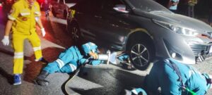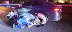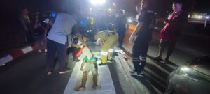 ปทุมธานี – ถนนมืดหนุ่มโรงงานขับเก๋งชนคนนอนกลางถนนเสียชีวิตติดคาใต้ท้องรถ