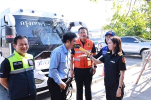 นอกจากนี้ รองผู้ว่าราชการจังหวัดชลบุรีและคณะ ยังได้ตรวจเยี่ยมจุดตรวจรถโดยสารสาธารณะของกรมการขนส่งทางบก ภายในสถานีบริการน้ำมันในพื้นที่อำเภอหนองใหญ่ โดยมีการตรวจสอบความพร้อมของรถโดยสารสาธารณะ ตรวจวัดแอลกอฮอล์ของพนักงานขับรถ รวมถึงแจกเครื่องดื่ม ขนม และผ้าเย็นให้แก่ผู้โดยสาร เพื่อสร้างความมั่นใจด้านความปลอดภัยในการเดินทาง