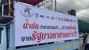 ชลบุรี – ขนส่งรวมตัวแหลมฉบัง จี้รัฐแก้น้ำมันแพง–ขาดแคลน ตั้งคำถามราคาหน้าคลัง–อ้างอิงสิงคโปร์