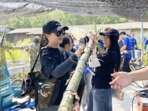 หลังจากการชี้แจงเกี่ยวกับโครงการดังกล่าวทีมวิทยากรได้มีการบรรยายให้ความรู้การแบ่งกลุ่มสาธิตการทำซั้งบ้านปลาพร้อมด้วยแบ่งกลุ่มจัดเก็บขยะตามชายหาดริมฝั่งบ้านหาดหอยอีกด้วยและการ สาธิตการมัดเชือกก่อนนำไปวางตามแนวปะการัง หน้าบ้านคลองใหญ่ โดยใช้ทางมะพร้าวมัดติดกับไม้ไผ่ยาวประมาณ 5-10 เมตร โดยใช้ยางล้อรถยนต์เทปูนลงไปในวงล้อจํานวน 5 วงล้อ เพื่อนําไปมัดติดกับไม้ไผ่ทิ้งซั้งกลางทะเลตามแนวประการังเทียมห่างจากฝั่งประมาณ 3 กม.โดยใช้เรือประมงพื้นบ้านจํานวน 4 ลํา และผู้ร่วมกิจกรรมกลางทะเลอีกจํานวน 4 ลํา ออกไปวางตามจุดต่างๆในแนวประการังหน้าบ้านคลองใหญ่ โดยได้ร่วมกันจัดสร้างการทําซั้งบ้านปลาก่อสร้างขึ้นมาเป็นแหล่งอนุบาลสัตว์นํ้าใต้ท้องทะเลและผ่านการดําเนินกิจกรรมอนุรักษ์ ที่สอดคล้องกับภูมิปัญญาท้องถิ่นตั้งแต่ปี พ.ศ. 2562-2568 ประจําทุกปี หลังพบว่าระบบนิเวศทางทะเลฟื้นตัว ปริมาณสัตว์น้ำที่จับได้เพิ่มขึ้น ชาวประมงมีรายได้มั่นคงขึ้นจากการฟื้นฟูทรัพยากร เพื่อให้เป็นที่อยู่อาศัยของพันธุ์สัตว์นํ้าขนาดเล็กและขนาดใหญ่ ทั้งกุ้ง หอย ปู และปลา เพื่ออนุรักษ์และฟื้นฟูต่อไป หลังจากนั้นได้ร่วมกันทํากิจกรรมออกทิ้งซั้งบ้านปลากลางทะเล โดยมีนายอําเภอคลองใหญ่ได้นั่งเรือออกไปร่วมกิจกรรมกลางทะเลอีกด้วย
