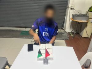 เจ้าหน้าที่ตำรวจได้รับแจ้งเหตุจากพลเมืองดีว่า มีการลักลอบจำหน่ายบุหรี่ต่างประเทศที่ไม่เสียภาษีอย่างถูกต้องภายในซอยเสรีไทย 11 แขวงคลองกุ่ม เขตบึงกุ่ม จึงได้ทำการเฝ้าสังเกตการณ์และพบ นายบังชู่ (นามสมมติ) อายุ 33 ปี กำลังจำหน่ายสินค้าบริเวณแผงค้าริมถนน โดยมีการนำกระดาษทิชชู่วางปิดบังสินค้าอำพรางไว้ เจ้าหน้าที่จึงทำการล่อซื้อและแสดงตัวเข้าจับกุม พร้อมตรวจยึดบุหรี่ของกลางจำนวนหนึ่ง