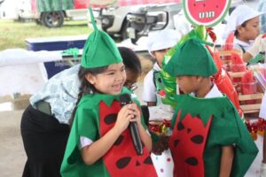 ในงานนี้ ท่านประธานในพิธีและผู้ปกครองต่างเดินชม เดิมชิม ให้กำลังใจน้อง ๆ ครบทุกบูท ที่น่ารักสุด ๆ คือ การนำเสนอสินค้าจากน้อง ๆ แต่ละคนมีลีลาไม่ซ้ำกัน ทั้งเสียงมั่นใจเสียงดังฟังชัด หรือเขินอาย จนเพื่อน ๆ ต้องช่วยลุ้น แต่รายละเอียดไม่มีตกหล่นเลย เรียกว่าเป็นการแปลงความรู้จากตำรามาสู่การปฏิบัติจริง เป็นทักษะที่มีประโยชน์ในอนาคตอย่างแน่นอน