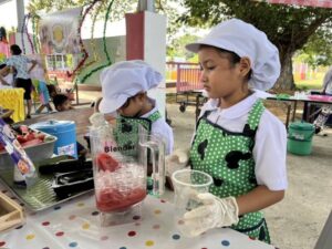 ไม่ว่าจะเป็น “ น้ำยาล้างจานพลังจิ๋ว ” การทำน้ำยาล้างจานจากเด็กนักเรียนชั้นอนุบาล 1, น้ำแตงโมปั่น “ เปี๊ยกปั่นหวาน ” จากเด็ก ๆ ชั้น ป. 1, ร้านข้าวไข่เจียวแสนอร่อย จากเด็ก ๆ ชั้น ป.2, ร้านน้ำมะนาวสมุนไพร, ร้านนวดสมุนไพร ร้านวุ้นแฟนซี แผ่นรองจานจากผักตบชวา หรือสบู่เหลวอโรมา